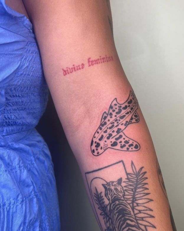 One of the things that stands out about tattooing as a form of self-expression to Sapien is the ability for tattoos to represent something meaningful or significant to them. As someone who has several meaningful tattoos with connections to her loved ones, pets, and hobbies, Sapien says the memories and meanings that come with tattooing allows so many people to express