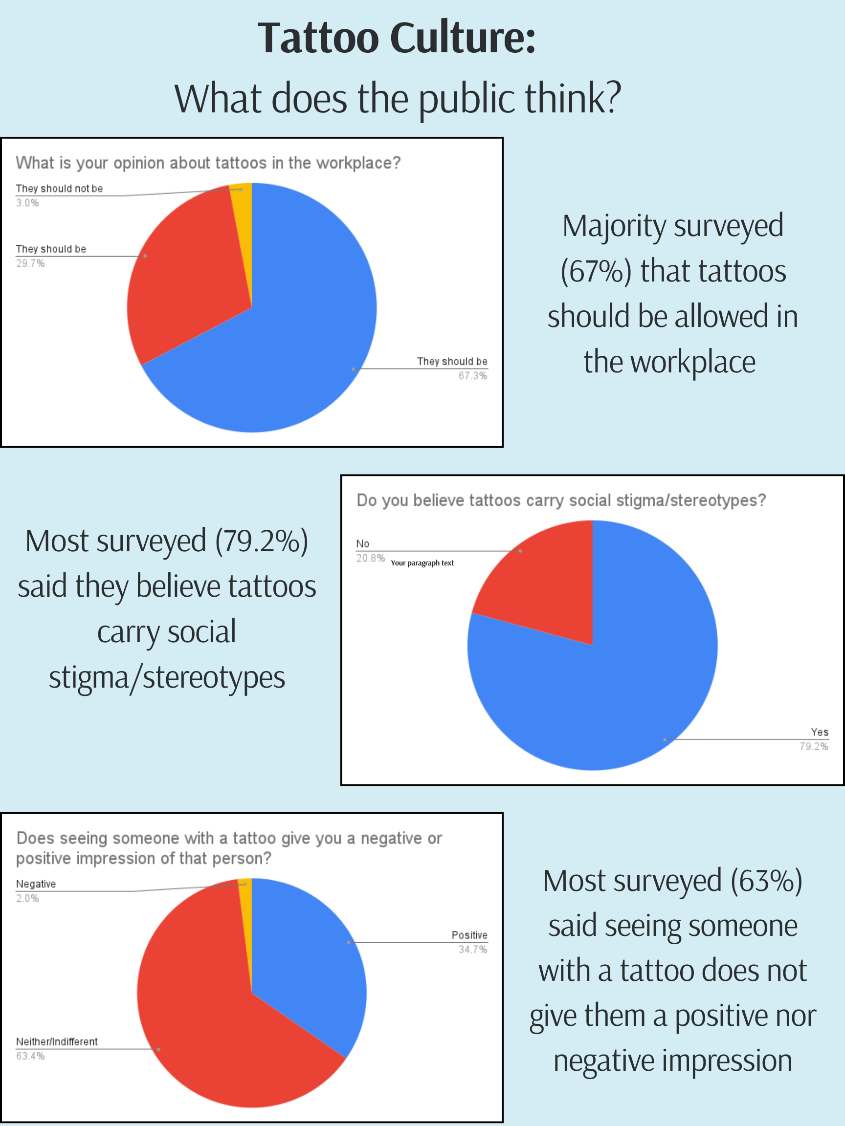Above is an infographic that showcases data from a survey conducted between Nov. 3 and Nov. 18, by this reporter regarding individual’s perceptions about tattoos and their representation in society.
